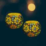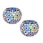 Glass Mosaic 3 inch Tealight Candle Holder for Diwali Decor, Christmas Decor – Pack of 2