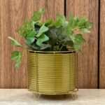 Golden Tripod Printed White Indoor Metal Table Planter