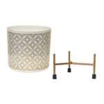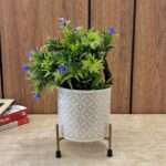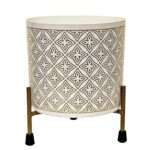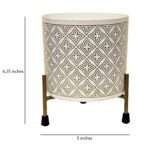 White Cylindrical Block Print Indoor Metal Table Planter