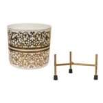 Brocade Pattern Table Planter with Stand – Elegant Indoor & Outdoor Decorative Plant Pot